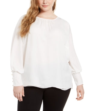Calvin Klein Women’s Plus Size Button-Cuff Top – Cream (1X)