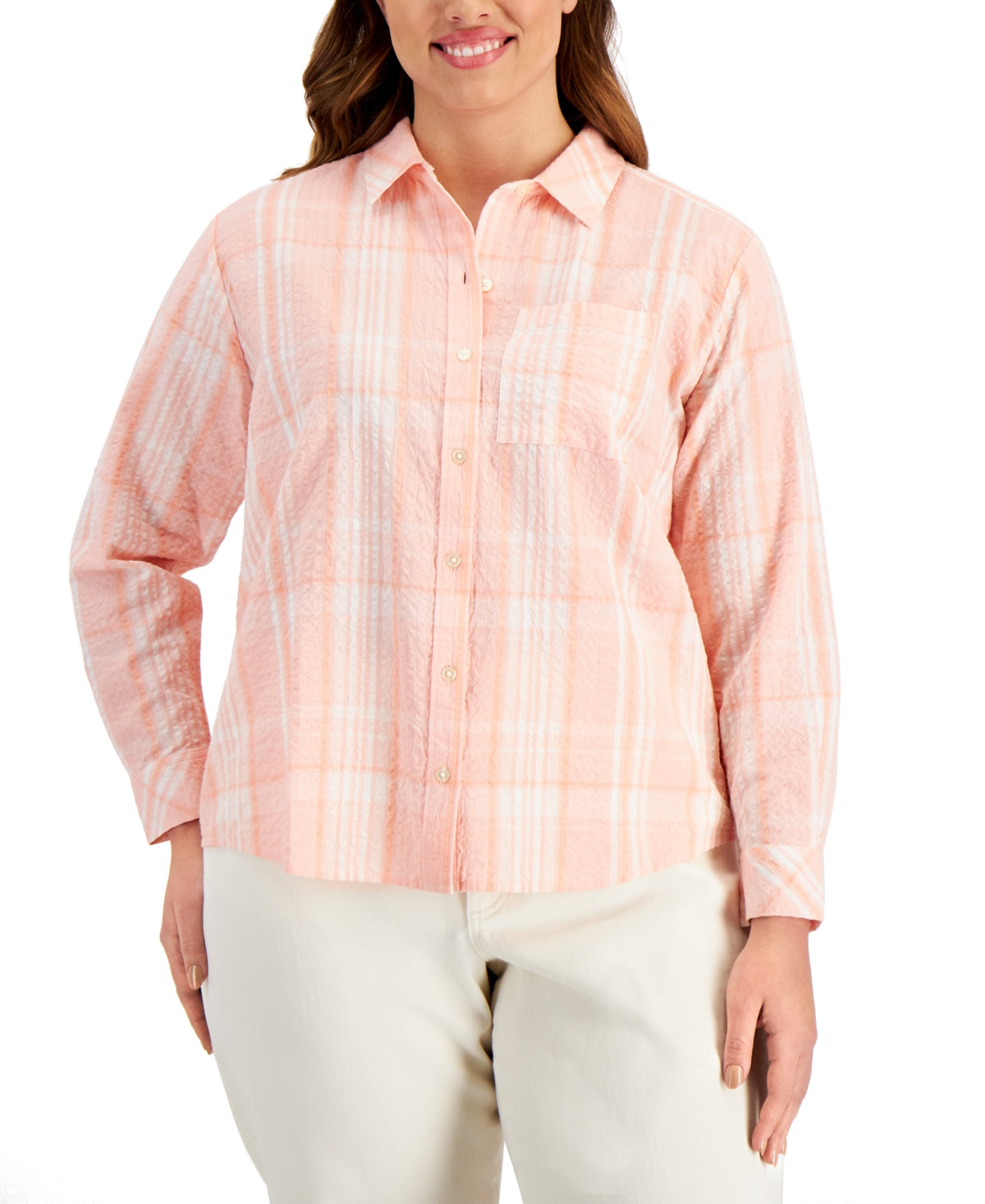 Style & Co Plus Size Plaid Boyfriend Shirt (Peach, Size 3X)