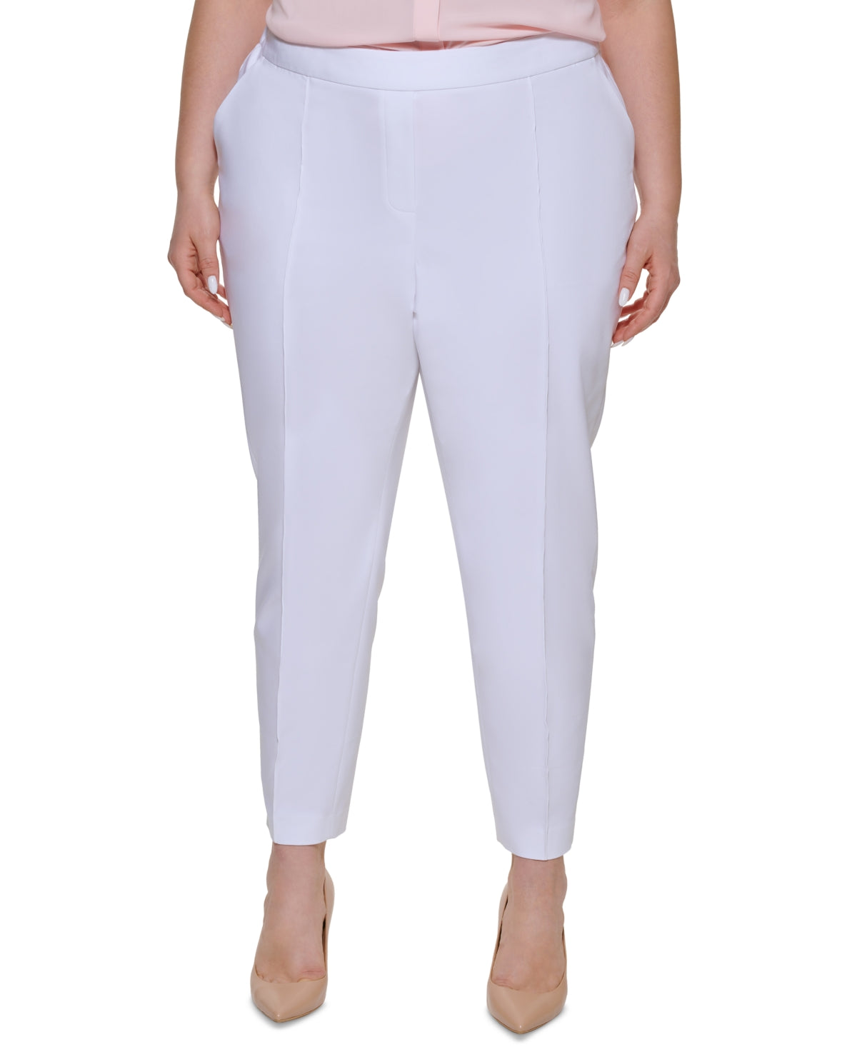 Calvin Klein Plus Size Elastic-Back Pants (White)
