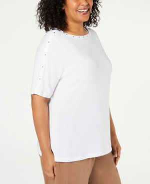 White Smocked Short Sleeve Crew Neck T-Shirt (Plus 2X)