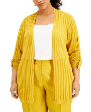 Womens Plus Cuffed 3/4 Sleeve Cardigan Top