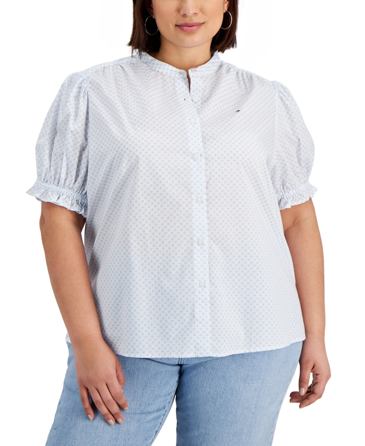 Plus Size Cotton Puff-Sleeve Polo Dress
