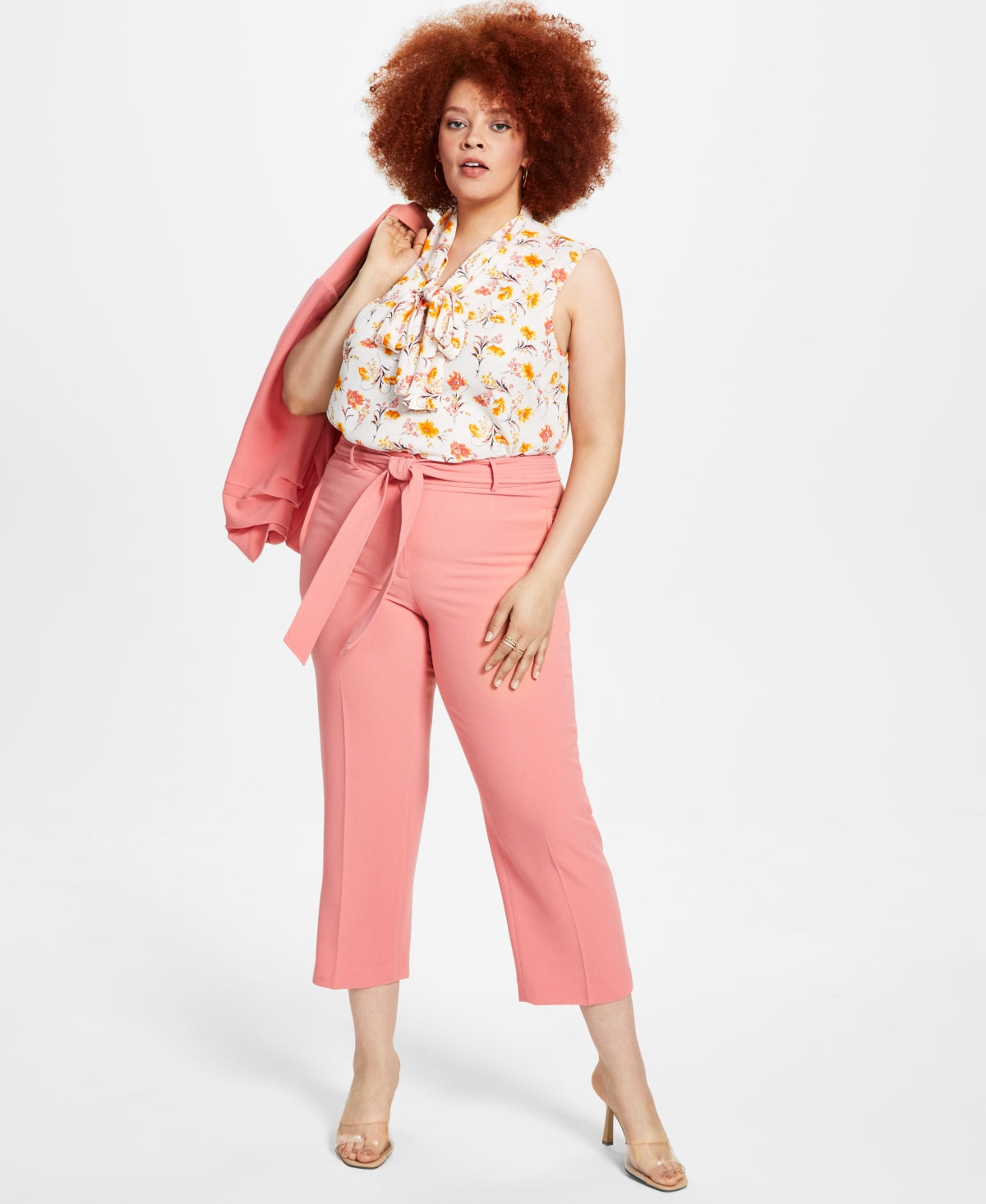 Womens Coral Belted High Waist Pants (Plus 20W)