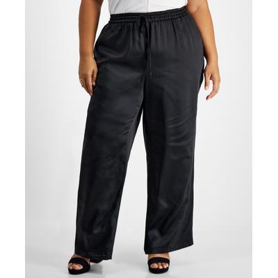 Womens Plus High Rise Linen Blend Wide Leg Pants