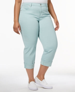 Womens Plus Cuffed Mid-Rise Capri Jeans
